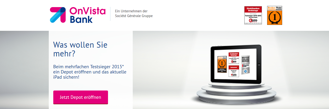 Die Nachfrage nach Brokern, die durch günstige Konditionen und umfangreiche Informationen auch Einsteigern das Traden und Investieren erleichtern sollen wird immer größer. OnVista ist eines dieser Portale. Gegründet im Jahre 1997 und mit Sitz im größten Bankenstandort Deutschlands hat es die besten Voraussetzungen um im umkämpften Markt der Onlinebroker ganz vorne mitzuspielen. Onvista ist Mitglied im Einlagensicherungsfonds des Bundesverbandes deutscher Banken und ein Unternehmen der Société Générale Gruppe.